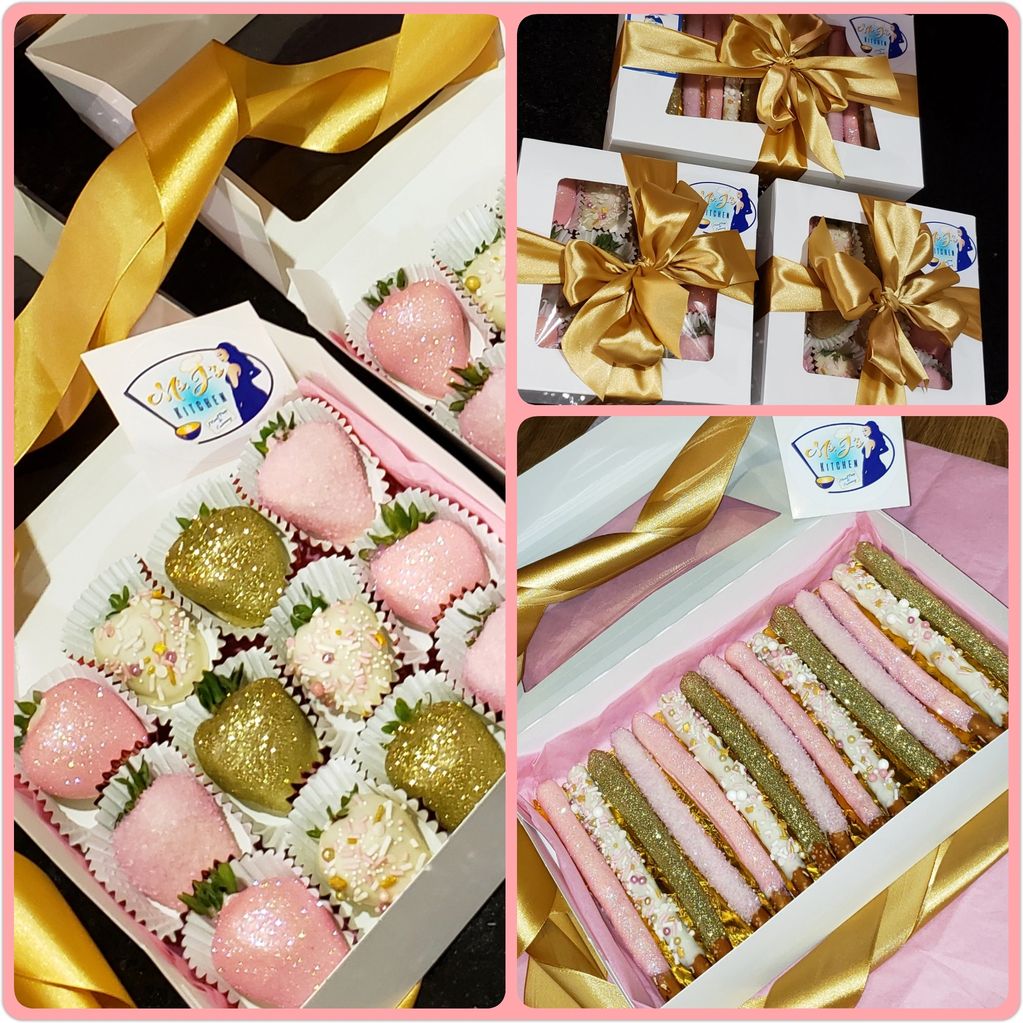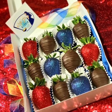 Your choice of milk or white chocolate strawberries topped with edible glitter and sugar. ***Themes & customizations will be an additional charge.